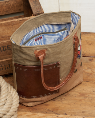 Bolso realizado con tela militar, aplicación ,asas y bolsillo todo en piel. Bolsos reciclados majadahonda, con aplicaciones en piel. unicos y diferentes.
