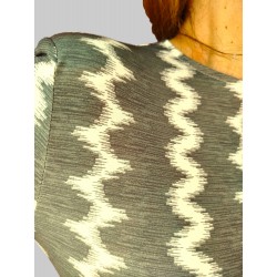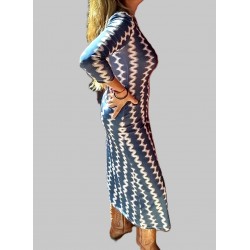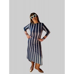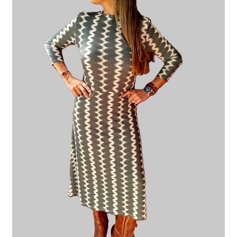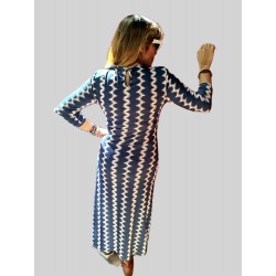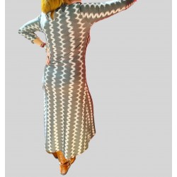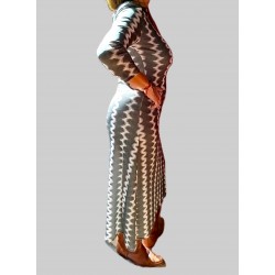 Vestido ajustado, largo, con manga larga y cierre trasero con botón