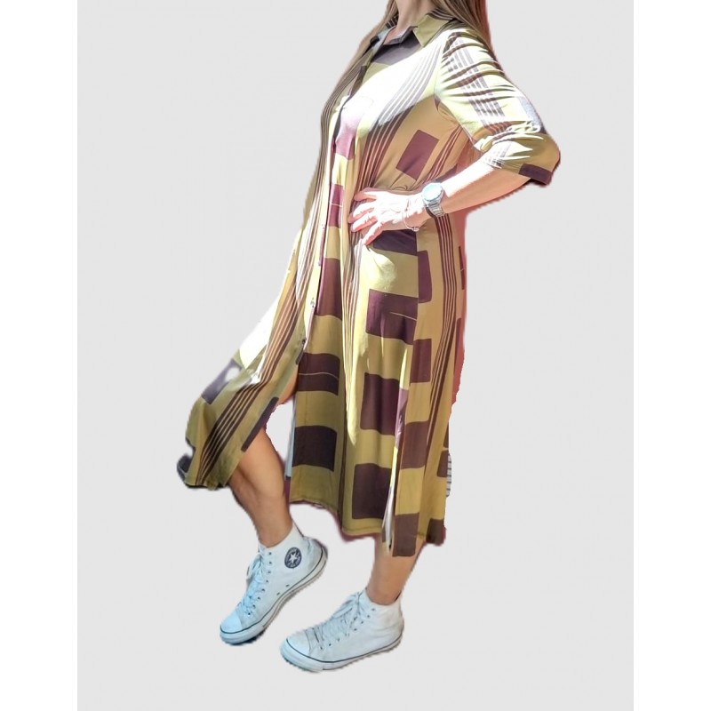 Vestido punto de seda abotonado hasta abajo con aberturas laterales