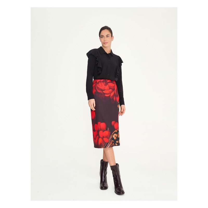 Falda tubo midi con cierre cremallera y abertura trasera