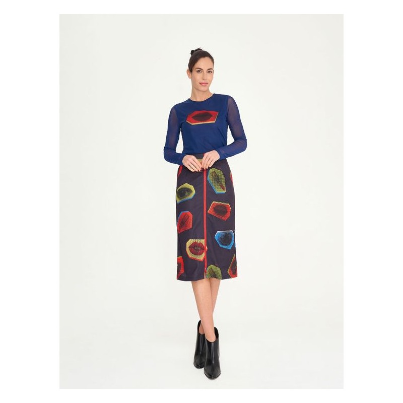 Falda tubo midi, con cierre cremallera y abertura trasera