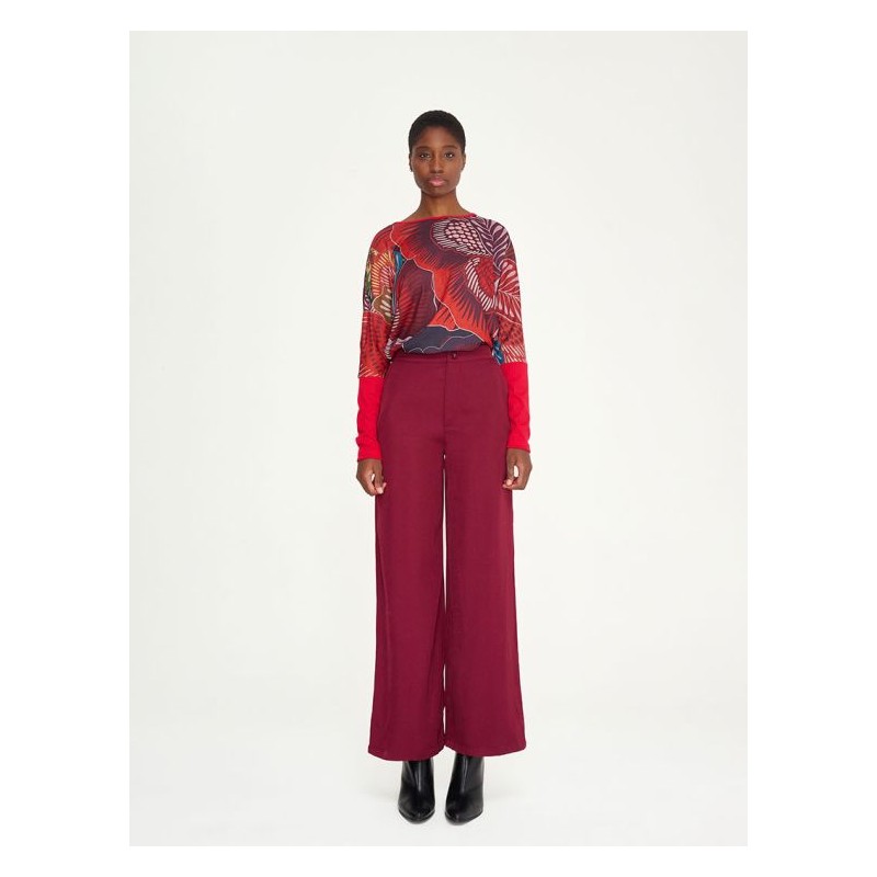 Pantalón ancho con goma trasera y cierre botón