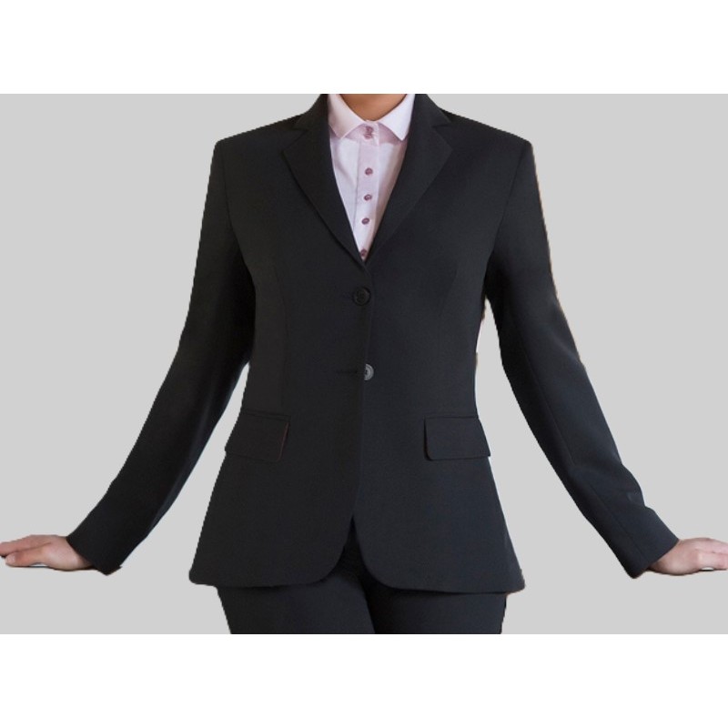 Americana negra ajustada, elástica y con falsos botones