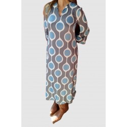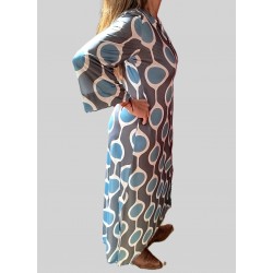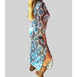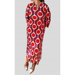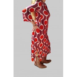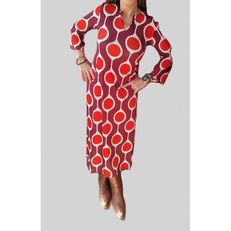 Vestido largo punto de seda, escote pico, manga francesa y aberturas laterales