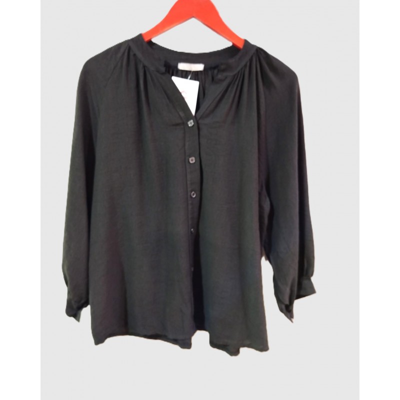 Blusa viscosa con cuello pico y abotonada hasta abajo